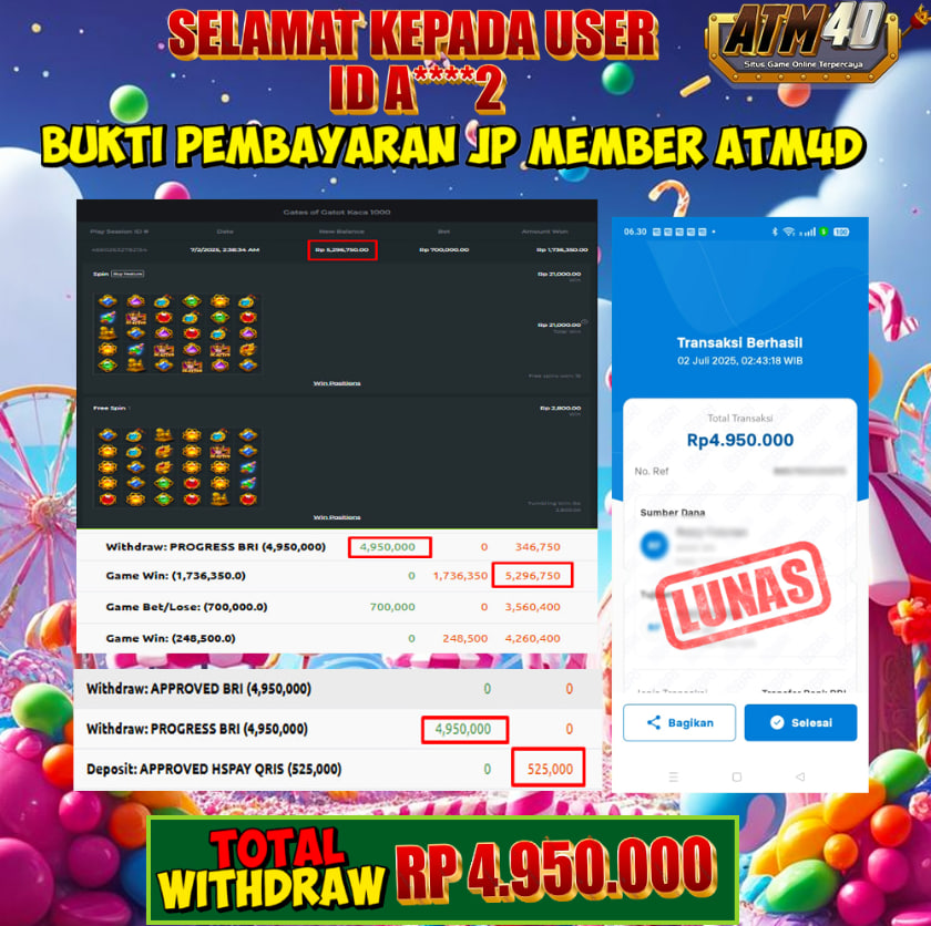 Jangan lewatkan kesempatan untuk meraih kemenangan besar. Daftar sekarang di ATM4D dan rasakan pengalaman bermain slot terbaik yang pernah ada! Putar gulungan, menangkan jackpot, dan jadilah bagian dari komunitas pemain sukses kami!