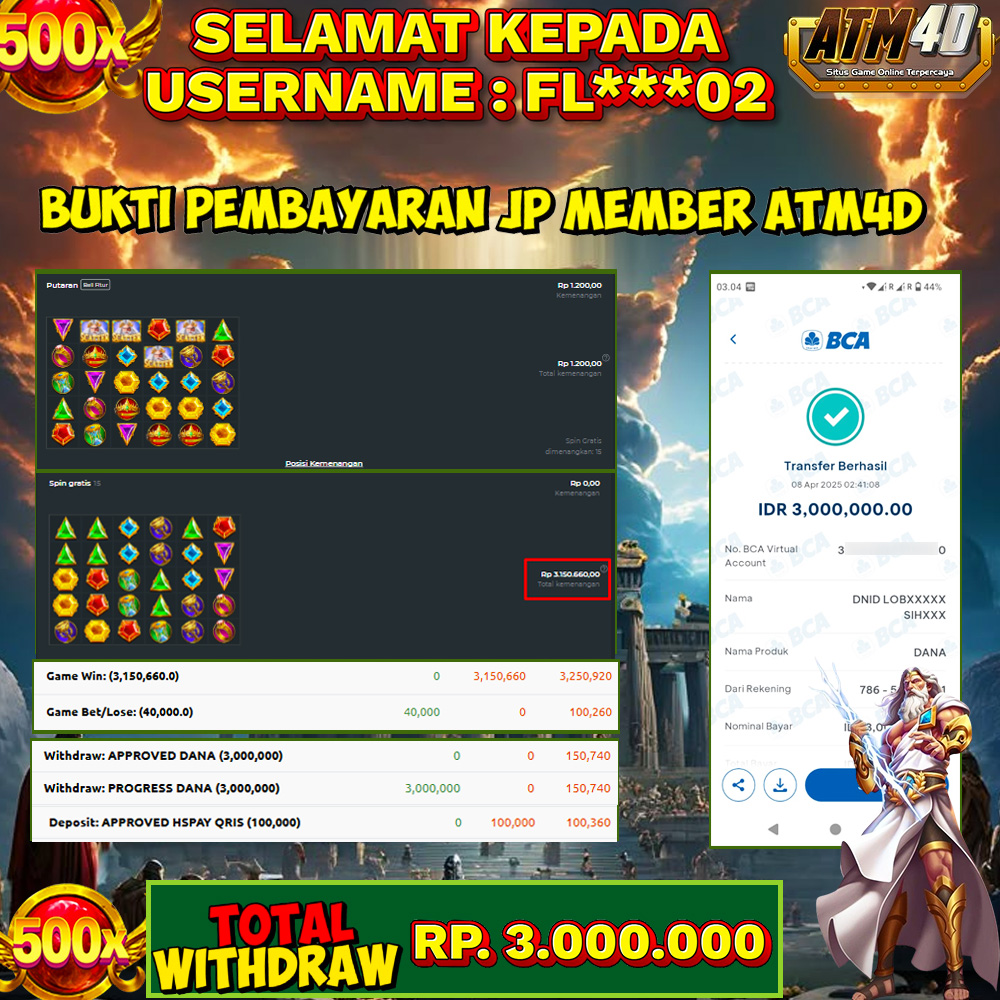 ATM4D – JACKPOT SLOT GATES OF OLYMPUS 08 APRIL 2025, Bukti Kemenangan Pragmatic Play, Menang Platform online, Situs Aman Tergacor dan Aman, Withdraw Berapapun Pasti Di Bayar Langsung, Maxwin Slot Online.