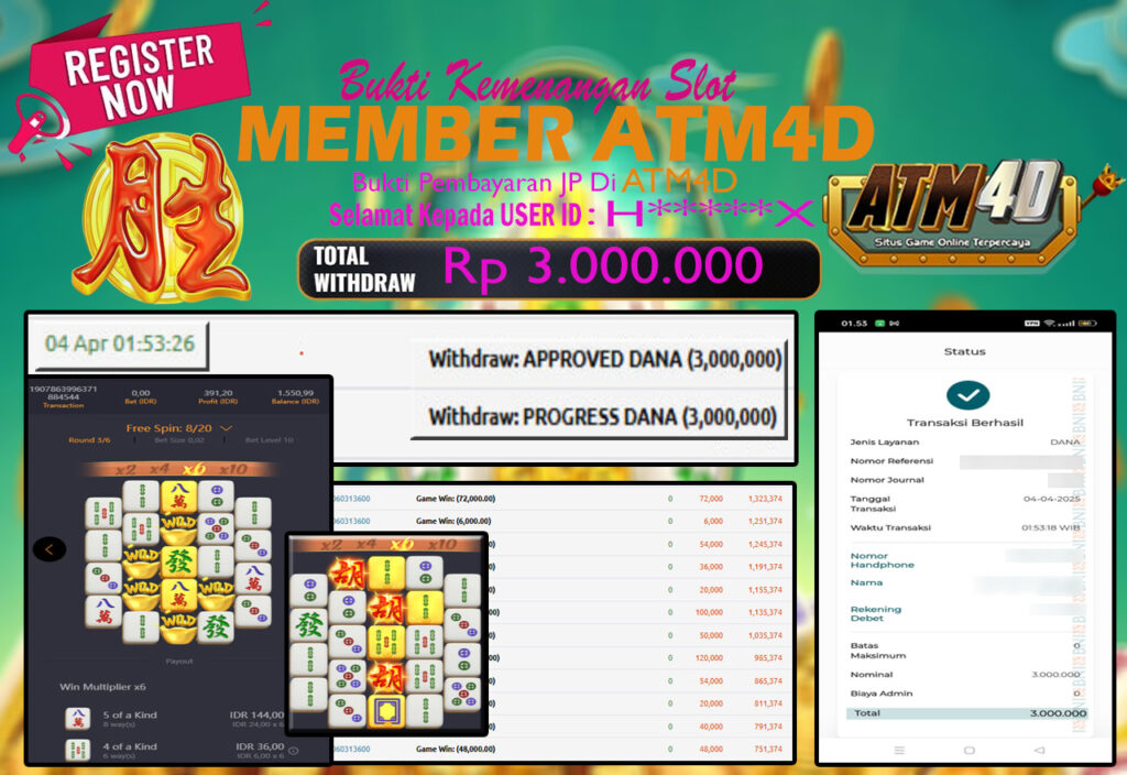 ATM4D – JACKPOT SLOT GACOR GEMS MAHJONG WAYS 2, Bukti Kemenangan , Kemenangan PG SOFT, Menang Platform online, Situs Aman Tergacor dan Aman, Withdraw Berapapun Pasti Di Bayar Langsung, Maxwin Slot Online.