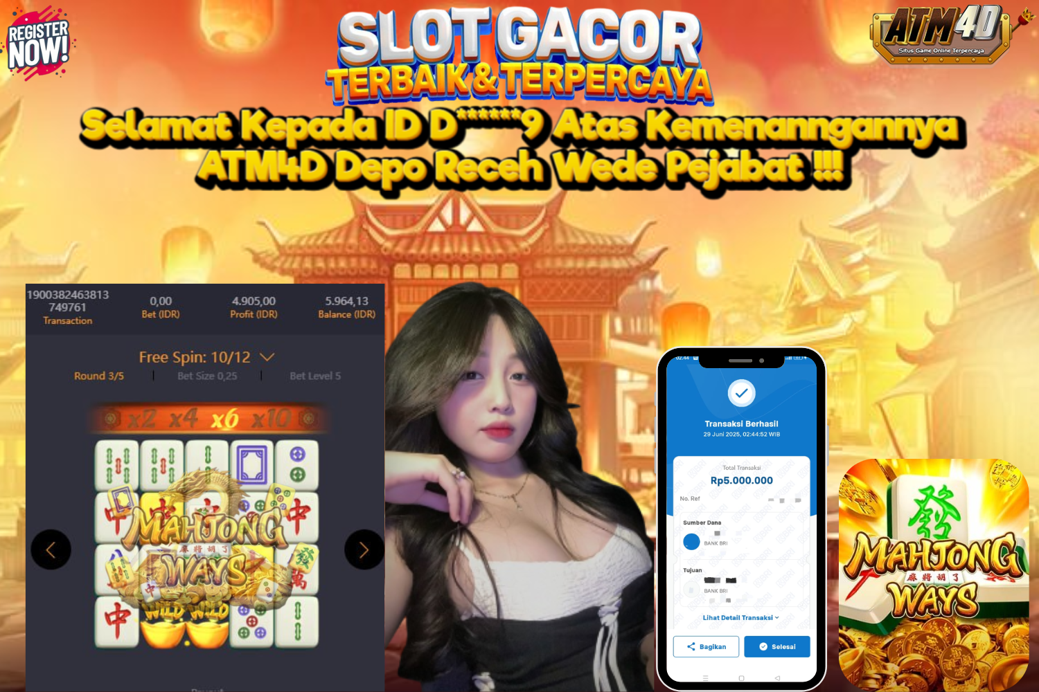 Jangan lewatkan kesempatan untuk meraih kemenangan besar. Daftar sekarang di ATM4D dan rasakan pengalaman bermain slot terbaik yang pernah ada! Putar gulungan, menangkan jackpot, dan jadilah bagian dari komunitas pemain sukses kami!