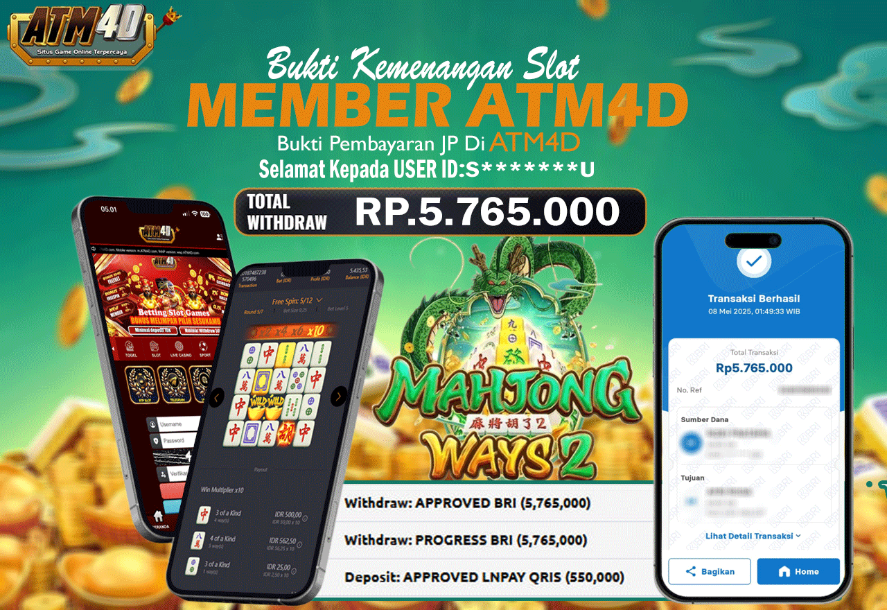 Jangan lewatkan kesempatan untuk meraih kemenangan besar. Daftar sekarang di ATM4D dan rasakan pengalaman bermain slot terbaik yang pernah ada! Putar gulungan, menangkan jackpot, dan jadilah bagian dari komunitas pemain sukses kami!