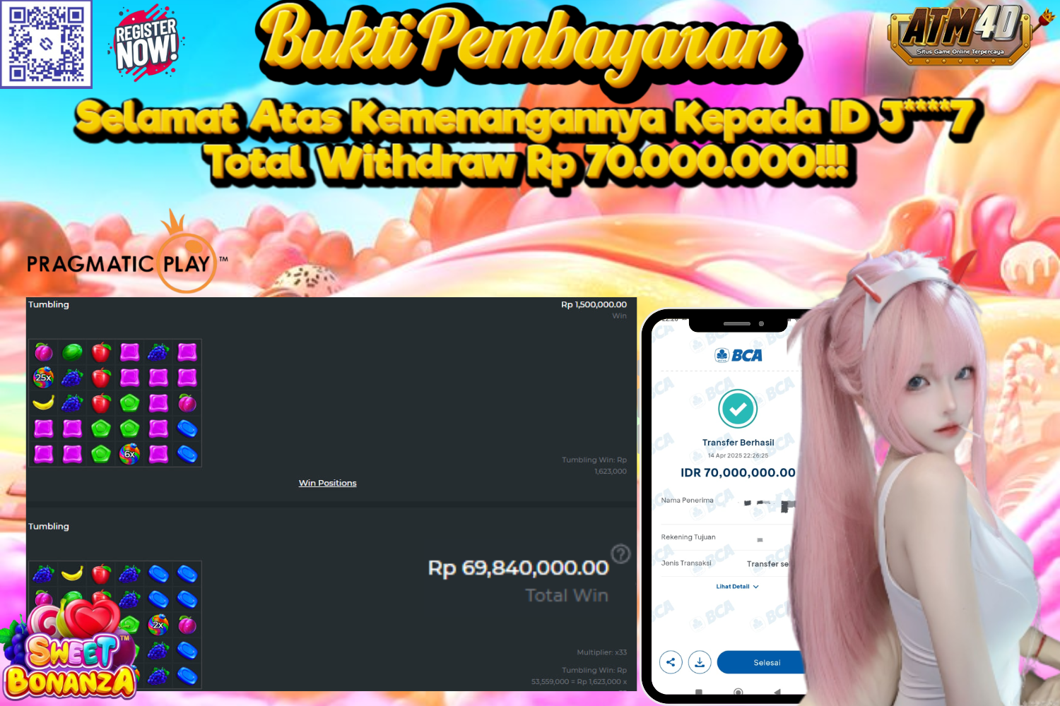 Selamat Kepada Member Yang Berhasil Mendapatkan Jackpot Dipermainan PRAGMATIC PLAY, Berikut Bukti Jackpot Member Di Situs ATM4D